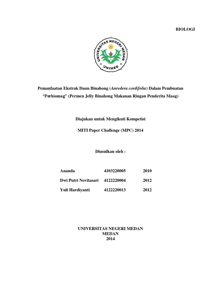Karya Tulis Ilmiah Pemanfaatan Ekstrak Daun Binahong ...