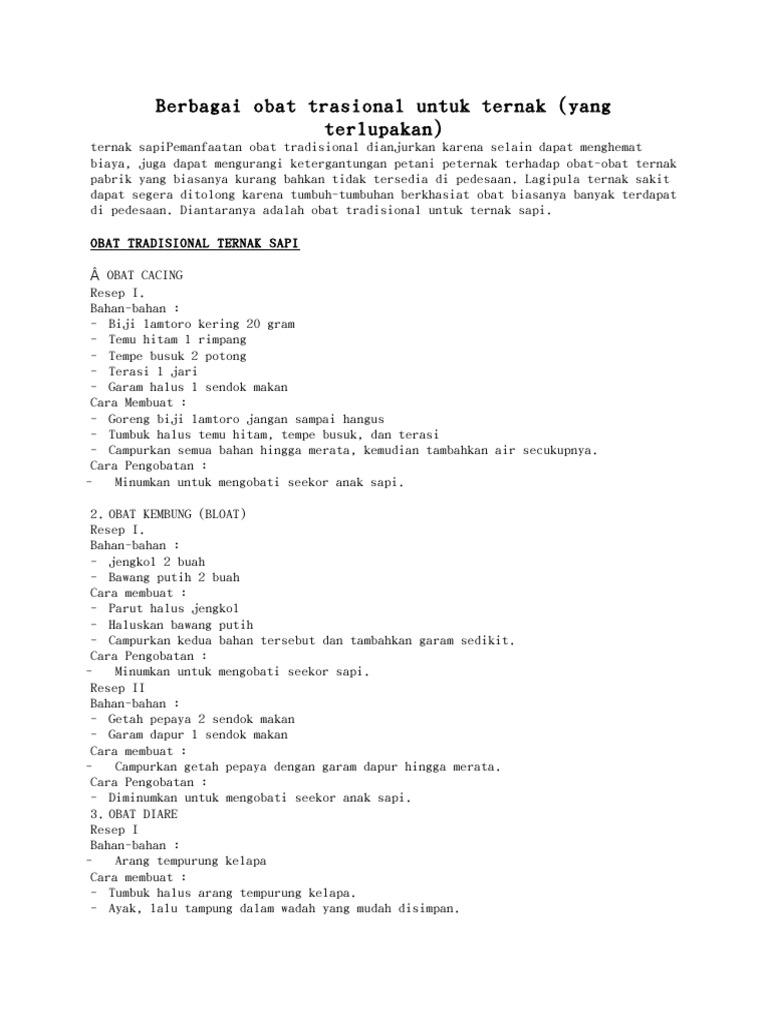 Berbagai Obat Trasional Untuk Ternak